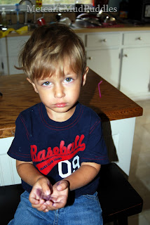 should not be prone to mischief when sick. Shouldn't they want to lay on the couch, read a book and sip hot tea???? It always works for me.... No, Samuel would rather get into my BLACK stamp pad that I, the responsible adult, left on the kitchen table. Whilst cooking a nutritious luncheon of fish sticks, corn on the cob, and cantaloupe(